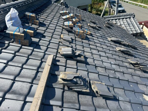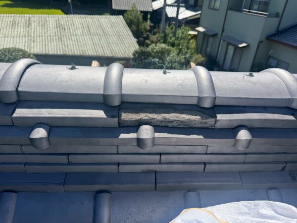 築年数の経過により、瓦自体の耐久性も低下している状態で、全体的に劣化が進んでいました。