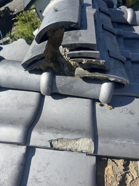 松山市にて「瓦が割れて、端の部分が落ちてしまった」とのご相談をいただきました。