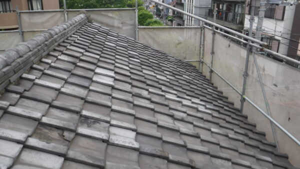 築60年が過ぎ、経年劣化が進行している状態で、瓦とともに、下地にも劣化が見受けられましたので、土台の「野地板」から新しくする「葺き替え工事」を行いました。