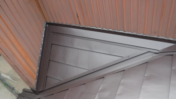 その集まった雨水を軒先の雨樋まで流すための「谷板金」を設置しました。